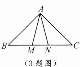 3. [教材习题变式]如图,$\triangle ABN≌\triangle ACM$,点$B$,$M$,$N$,$C$在一条直线上.若$BC=8$,$BN=5$,$\triangle ABC$的面积是$S$,则$\triangle AMN$的面积是(