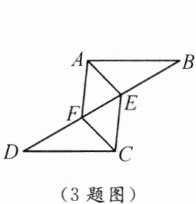 3. 如图,$\triangle ABF≌\triangle CDE$,$\angle B$和$\angle D$是对应角,$AF$和$CE$是对应边.若$\angle B=30^{\circ}$,$\angle DCF=45^{\circ}$,$BD=8$,$EF=2$,则$\angle EFC=$