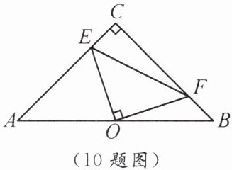 10. 如图,在$\triangle ABC$中,$AC = BC$,$\angle C = 90^{\circ}$,$O$为$AB$的中点,点$E$在$AC$上,$OF \perp OE$交$BC$于点$F$.若$AC = 4$,$CE:AE = 1:3$,则$\triangle EOF$的面积是
