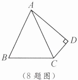 8. 如图,在四边形$ABCD$中,$AB = AC$,$CD \perp AD$.若$\angle BAC = 50^{\circ}$,$CD = \frac{1}{2}BC$,则$\angle ACD$的度数是