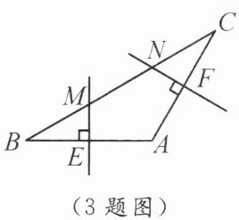 3. 如图,在 $\triangle ABC$ 中,$AB = AC$,$\angle A = 120^{\circ}$,$AB$ 的垂直平分线交 $BC$ 于点 $M$,交 $AB$ 于点 $E$,$AC$ 的垂直平分线交 $BC$ 于点 $N$,交 $AC$ 于点 $F$.若 $MN = 2$,则 $NF$ 的长为