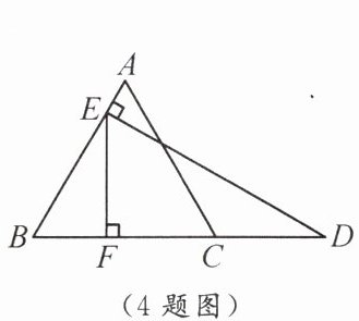 4. 如图,$\triangle ABC$ 是等边三角形,$D$ 是 $BC$ 延长线上一点,$DE \perp AB$ 于点 $E$,$EF \perp BC$ 于点 $F$.若 $CD = 3AE$,$CF = 6$,则 $AC$ 的长为