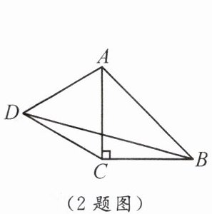 2. 如图,在 $\triangle ABC$ 中,$\angle ACB = 90^{\circ}$,$AC = BC$,以 $AC$ 为边在其左侧作等边三角形 $ACD$,连接 $BD$.若 $AC = 4$,则 $\triangle BCD$ 的面积为