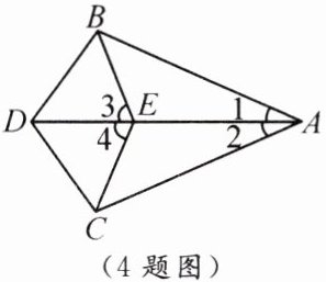 4. [教材习题变式]如图,∠1=∠2,∠3=∠4,要证BD=CD,需先证△AEB≌△AEC,依据是