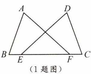 1. [2023·凉山州]如图,点E、点F在BC上,BE=CF,∠B=∠C.添加一个条件,不能证明△ABF≌△DCE的是(