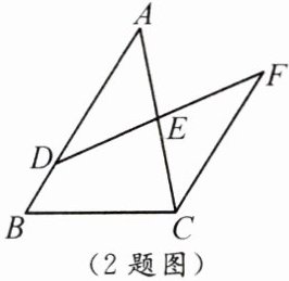 2. [教材习题变式]如图,D是AB上一点,DF交AC于点E,DE=FE,FC//AB.若AB=4,CF=3,则BD的长是(