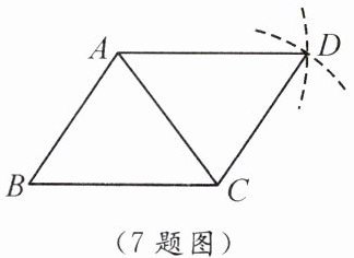 7. 如图,以 $ \triangle ABC $ 的顶点 $ A $ 为圆心,$ BC $ 的长为半径作弧;再以顶点 $ C $ 为圆心,$ AB $ 的长为半径作弧,两弧交于点 $ D $,连接 $ AD $,$ CD $.若 $ \angle B = 56^{\circ} $,则 $ \angle BCD $ 的度数为