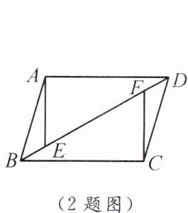 2. 如图,$ AE = CF $,$ AD = CB $,$ E $,$ F $ 为 $ BD $ 上的两点,且 $ BF = DE $.若 $ \angle AED = 60^{\circ} $,$ \angle ADB = 30^{\circ} $,则 $ \angle BCF $ 的度数为(