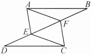 ∴BF + EF = DE + EF,即BE = DF.在△ABE和△CDF中,$\begin{cases}AB = CD,\\∠B = ∠D,\\BE = DF,\end{cases}$
