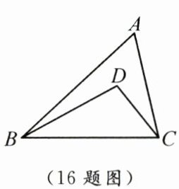 16. 如图,D是△ABC内一点,$ \angle ABD = \frac{1}{3}\angle ABC $,$ \angle ACD = \frac{1}{3}\angle ACB $.若$ \angle A = \alpha $,则$ \angle BDC = $(用含α的代数式表示).