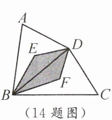 14. 如图,在四边形$ABCD$中,点$E$是$\triangle ABD$的重心,点$F$是$\triangle BCD$的重心.若四边形$ABCD$的面积是12,则阴影四边形$DEBF$的面积是