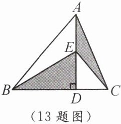 13. 如图,在$\triangle ABC$中,$AD$是高,$CE$是$\triangle ACD$的中线,连接$BE$.若$BD=2CD$,$S_{\triangle ECD}=a$,则图中阴影部分的面积为