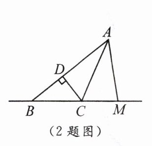 2. 如图,在 $\triangle ABC$ 中,$CD \perp AB$,垂足为 $D$,$AB = 2BC = 10$,$CD = 3$,$M$ 是直线 $BC$ 上一动点,则 $AM$ 的最小值是