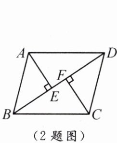2. 如图,$ AB = CD $,$ AE \perp BD $ 于点 $ E $,$ CF \perp BD $ 于点 $ F $,$ AE = CF $,则图中的全等三角形有