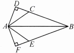 $\therefore Rt \bigtriangleup ABD \cong Rt \bigtriangleup ABF(HL)$,$\therefore BD = BF$。在Rt△ACD和Rt△AEF中,$\begin{cases} AD = AF,\\ AC = AE, \end{cases}$