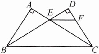 例题 如图,$ AB = DC $,$ \angle A = \angle D = 90° $,$ AC $,$ BD $ 相交于点 $ E $,$ EF // BC $ 交 $ CD $ 于点 $ F $. 求证:$ EF $ 平分 $ \angle DEC $.