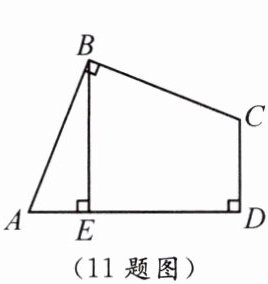 11. 如图,在四边形 $ ABCD $ 中,$ AB = BC $,$ \angle ABC = \angle ADC = 90° $,$ BE \perp AD $ 于点 $ E $,且四边形 $ ABCD $ 的面积为 16,则 $ BE = $