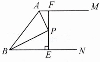 4.解:如图,过点$P$作$PD \perp AB$于点$D$.$\because AM // BN$,$PE \perp BN$,$\therefore PF \perp AM$.$\because AP$平分$\angle MAB$,$PF \perp AM$,$PD \perp AB$,$\therefore PD = PF.\because BP$平分$\angle NBA$,$PE \perp BN$,$PD \perp AB$,$\therefore PD = PE$,$\therefore PD = PE = PF = \frac{1}{2}EF = 2$,$\therefore S_{\triangle APB} = \frac{1}{2}AB \cdot PD = \frac{1}{2} × 5 × 2 = 5$.
