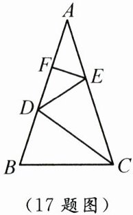 17. 如图,在$\triangle ABC$中,$D$,$F$为$AB$上的点,$E$为$AC$上的点,其中$B$,$E$两点关于直线$CD$对称,$A$,$D$两点关于直线$EF$对称.若$AB = AC = m$,$BC = n$,则下列结论正确的是(填序号).