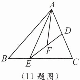 11. 如图,在$\triangle ABC$中,$CE = 2BE$,$D$是$AC$的中点,连接$DE$,$AE$,取$DE$的中点$F$,连接$AF$.若$\triangle AEF$的面积是 1,则$\triangle ABC$的面积是