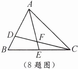 8. 如图,$D$,$E$分别是$\triangle ABC$的边$AB$,$BC$上的点,$AD = 2BD$,$BE = CE$.若$\triangle ABC$的面积为 6,设$\triangle ADF$的面积为$S_1$,$\triangle CEF$的面积为$S_2$,则$S_1 - S_2$等于(