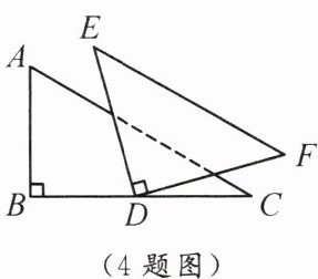 4. 将一副直角三角尺按如图方式叠放,点$D$在$BC$上.若$AC // EF$,则$∠BDE$的度数为(
