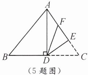 5. 如图,在$\triangle ABC$中,$AD \perp BC$,垂足为$D$,$E$是$AC$上一点,连接$DE$,将$\triangle CDE$沿$DE$折叠,使点$C$落在边$AC$上的点$F$处.若$∠ADF = 20°$,$∠BAC = 75°$,则$∠B$的度数为(