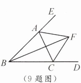 9. 如图,△ABC 的外角∠ACD 的平分线 CF 与内角∠ABC 的平分线 BF 相交于点 F.若∠BFC=35°,则∠CAF 的度数是