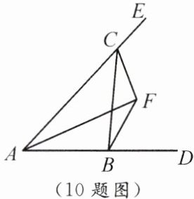 10. 如图,点 B,C 分别在∠EAD 的两边上,连接 BC,F 为 BC 右侧一点,连接 AF.已知 FC=FB,∠ABF+∠ACF=180°.有下列结论:①F 为∠EAD 的平分线上一点;②AF=BC;③点 F 到直线 AE,AD 的距离不一定相等.其中正确的结论有