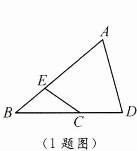 1. 如图,C,E 分别为△ABD 的边 BD,AB 上的点,且 AE = AD,CE = CD,∠D = 75°,∠ECD = 145°,则∠B 的度数是