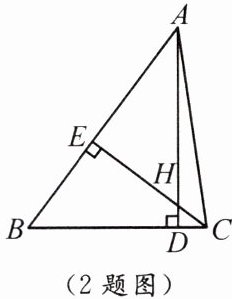 2. 如图,在△ABC 中,AD⊥BC 于点 D,CE⊥AB 于点 E,AD,CE 相交于点 H.若 EH = EB = 3,AE = 4,则△ACH 的面积为