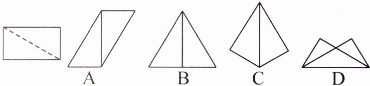 2. 如图,小华将一张长方形纸片沿对角线剪开,他利用所得的两个直角三角形通过图形变换构成了下列四个图形,这四个图形中,不是轴对称图形的是 (
