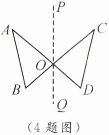 4. [2024·河北] 如图,AD与BC相交于点O,△ABO和△CDO关于直线PQ对称,点A,B的对称点分别是点C,D.下列结论不一定正确的是 (