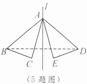 5. 如图,△ABC与△ADE关于直线l对称.有下列结论:①△ABC≌△ADE;②直线l垂直平分BD;③∠C=∠E;④BC与DE的延长线的交点一定在直线l上.其中正确的是