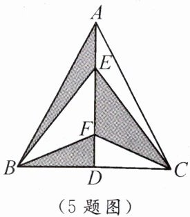 5. 如图,在△ABC中,AB=AC,D为BC的中点,点E,F在AD上.若△ABC的面积为4√3,则图中阴影部分的面积为 (