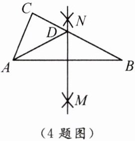 4. 如图,在△ABC 中,分别以点 A 和点 B 为圆心,大于$\frac{1}{2}AB$的长为半径作弧,两弧相交于点 M 和点 N,作直线 MN 交 CB 于点 D,连接 AD.若 AC = 8,BC = 16,则△ACD 的周长为