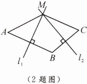 2. 如图,已知线段 AB,BC 的垂直平分线$l_1$,$l_2$相交于点 M,则线段 AM 与 CM 的数量关系是