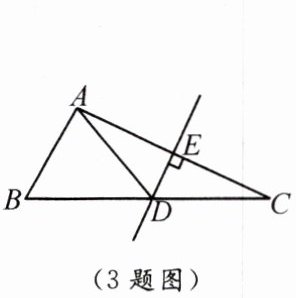 3. 如图,在△ABC 中,边 AC 的垂直平分线交 BC 于点 D,交 AC 于点 E.若 AB = 6,△ABD 的周长为 16,则 BC 的长是