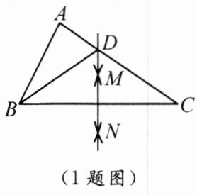 1. 如图,在△ABC 中,按以下步骤作图:①分别以点 B 和点 C 为圆心,大于$\frac{1}{2}BC$的长为半径作弧,两弧相交于点 M 和点 N;②作直线 MN 交 AC 于点 D,连接 BD.若 AC = 6,AD = 2,则 BD 的长为(