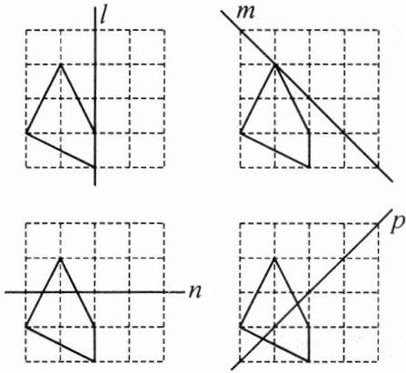 4. 如图,分别在正方形网格图中把各图形补成关于已知直线 $ l $,$ m $,$ n $,$ p $ 对称的图形.