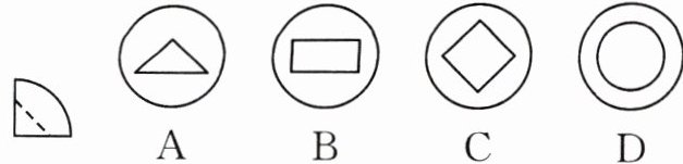 1. 如图,将一圆形纸片对折后再对折,然后沿着图中的虚线剪开,得到两部分,其中一部分展开后的平面图形是()