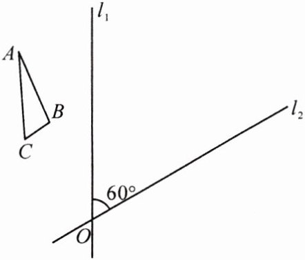 9. 如图,直线 $ l_1 $ 与 $ l_2 $ 相交于点 $ O $,所成的较小角为 $ 60^{\circ} $.