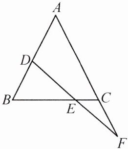14. 如图,在$\triangle ABC$中,$AB = AC$,$D$,$E$分别是$AB$,$BC$上的点,连接$DE$并延长与$AC$的延长线交于点$F$.若$DE = EF$,求证:$DB = CF$.