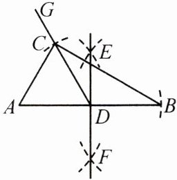 9. 如图,利用直尺和圆规作出线段$AB$的垂直平分线$EF$交$AB$于点$D$,并在射线$DG$上截取$DC = DB$,连接$AC$,$BC$.若$AC = 2$,$BC = \frac{38}{11}$,求$\triangle ABC$的面积.