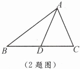 2. 如图,AD是△ABC的中线,△ABD比△ACD的周长大6,则AB与AC的差为(