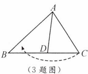 3. 如图,将△ABC折叠,使AC边落在AB边上,展开后得到折痕AD。若∠BAC=80°,则∠BAD的度数是