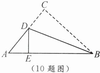 10. 如图,在三角形纸片$ABC$中,$AB = 9\ cm$,$BC = 7\ cm$,$AC = 6\ cm$,沿过点$B$的直线折叠这张三角形纸片使顶点$C$落在边$AB$上的点$E$处,折痕为$BD$,则$\triangle AED$的周长为
