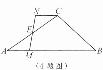 4. 如图,在$\triangle ABC$中,$E$为$AC$的中点,$CN// AB$,$NE$的延长线交$AB$于点$M$.若$MB = 6$,$CN = 2$,则$AB$的长为(
