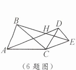 6. 如图,$CA = CB$,$CD = CE$,$\angle ACB = \angle DCE = 40^{\circ}$,连接$AD$,$BE$交于点$H$,则$\angle AHE$的度数为(