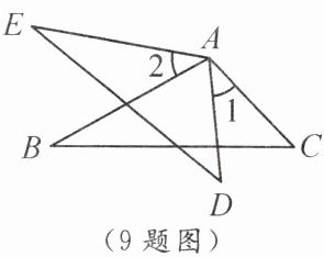 9. 如图,$AC = AD$,$\angle 1 = \angle 2$,要使$\triangle ABC\cong\triangle AED$,应添加的条件是
